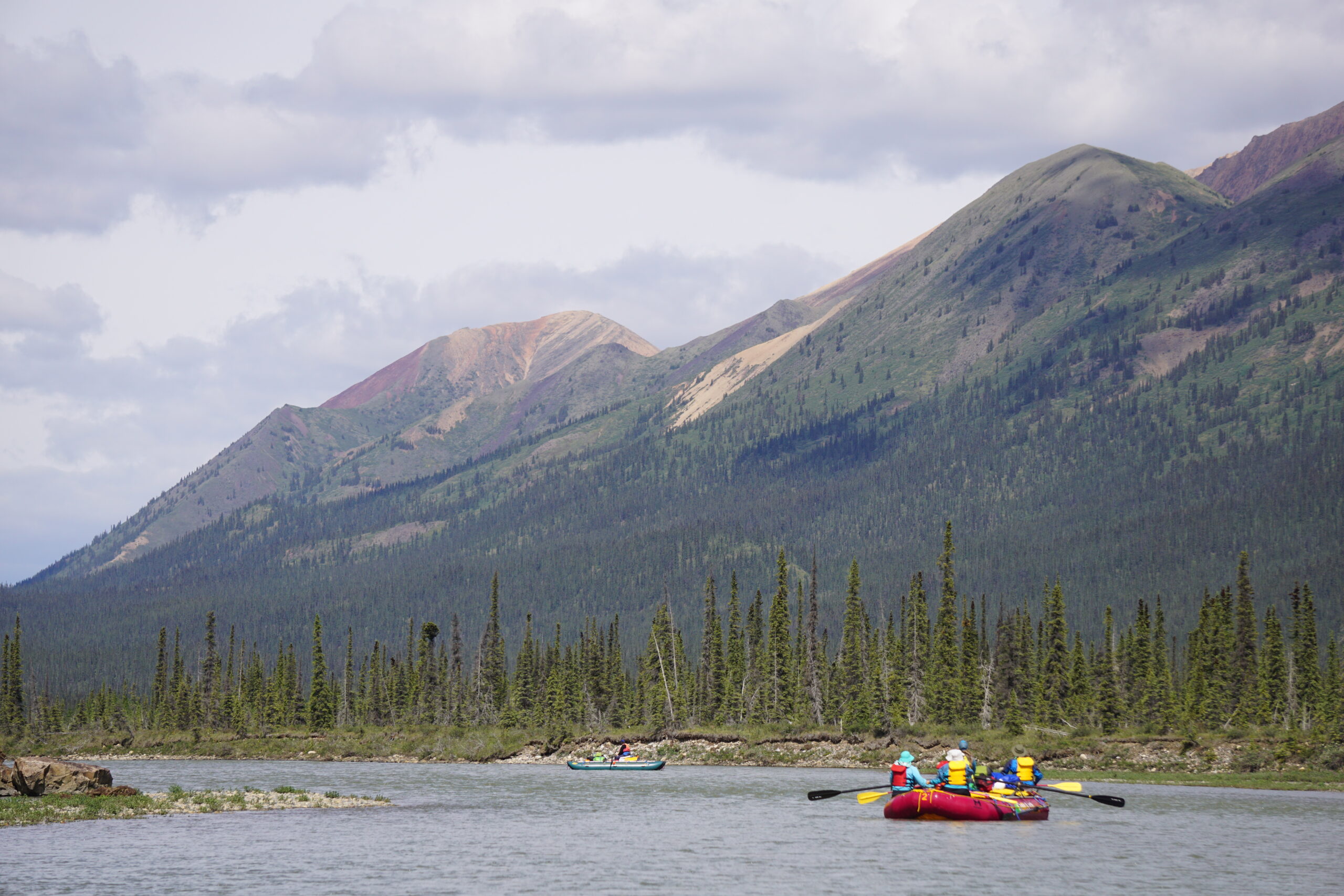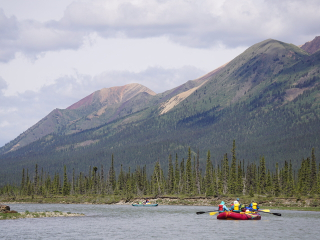 Three rivers— The Silverberry, Ravensthroat and Redstone connect to form a single navigable ribbon of azure water through the wild landscape of the Mackenzie Mountains, flowing from the backs of some of the highest peaks in the Northwest Territories all the way to the Mackenzie River. This river journey is perfect for rafting as its swift current and fun class 2-3 rapids, paired with epic mountain scenery, will keep a smile on your face the whole way downstream! Wildlife abounds as you float along, Hotsprings await for you to soak in, and Grayling and Bull Trout await your cast. Rafting allows you time and peace of mind  to feel the magic of the river worry free-as your guides will expertly row you and your group through the canyons and rapids of this river system. Note that though no previous paddling experience is needed, previous camping  experience and a good level of fitness is strongly recommended.